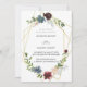 Capture the rustic charm of a countryside autumn with watercolor greenery and simple fall hues. Add a bohemian touch with daisy blooms, modern geometric designs, and a palette of navy, dusty blue, and light blue for a memorable blue-themed wedding.