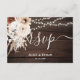 Wedding online RSVP enclosure card features lace and neutral flowers on rustic wood.