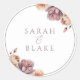 Make your wedding day uniquely yours with our customizable elegant boho pink, purple, and neutral round sticker. This is perfect for a wedding invitation, a favor treat bag, or a gift label. It has an elegant dark and moody autumn or winter vibe. Personalize your text for a stylish addition to your wedding and easily print with Zazzle!