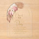 Bring the warmth of the kasbah to your event with this desert inspired invite that features a color palette from soft sand and rose gold to deep burnt copper. Exotic dried botanicals, subtle arch shapes add to the mystique. The transparent acrylic graduation invitation shown here has all the above with the addition of a template to add your event details.