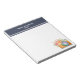 A personalized notepad with a watercolor illustration of an orange camera and a floral bouquet resting on top. The flowers in the bouquet are light pink and orange with green leaves, a pretty floral arrangement.