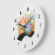 Boho Orange Camera & Flowers Watercolor Large Clock
