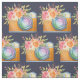 Boho Orange Camera & Flowers Watercolor Pattern Fabric
