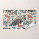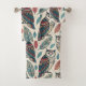 Boho Owl Leaf Pattern Teal Rust Beige Bath Towel Set