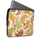 An electronics bag featuring a paisley design in boho inspired shades of pink, green, burgundy, orange, and yellow.