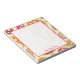 A notepad featuring a background of pink, orange, yellow, burgundy, and green paisley. Personalize with your name in pink.