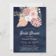 Boho Palm Dusty Pink Roses Navy Blue Bridal Shower Invitation