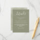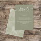 A simple minimalist wedding rsvp with a QR code website online details, with URL scannable scan online, guests more information URL response, respond via website QR code, with a botanical boho tropical destination, a watercolor palm leaves leaf design, for resort beach ocean island venue, modern simple green sage color, a tropical greenery floral foliage, an elegant casual simple respond enclosure