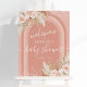 Rustic bohemian girl baby shower foam board featuring a girly pink background with a rainbow arch feature, watercolor desert dried palm leaves, pampas grass, florals, pink glitter, and a elegant baby shower welcome sign template that is easy to personalize.
