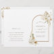 This wedding ceremony program features painted watercolor protea, white orchids, dry pampas grass, white anthuriums, wildflowers, exotic leaves with an arch frame. For more advanced customization of this design, please click the "customize further" link. Matching items are also available. NOTE: You will need to fold them in half when they arrive.