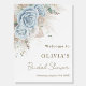 Welcome guests in style with this elegant boho pastel blue rose bridal shower welcome sign. Featuring soft watercolor blue roses, delicate pampas grass, and muted earthy tones, this boho floral foam board sign adds a chic and modern touch to your celebration. Perfect for a spring or summer bridal shower, this customizable welcome sign sets the tone for a romantic and serene event. Printed on durable foam board, it's easy to display and makes a beautiful keepsake. Personalize with the bride-to-be's name and event details to make it uniquely yours. Personalize with your event details in minutes! Matching items available in store! (c) The Happy Cat Studio.