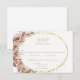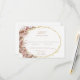 This boho themed wedding RSVP response card features wispy watercolors of pampas grass in dusty rose hues and subtle chocolate undertones. Sweet cream roses accent the gold glitter oval frame creating an elegant presentation for your guests. Designed to coordinate with our Boho Pampas Grass Wedding collection. Customize the important details by adding your desired response date and meal choices.