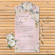 ALSO AVAILABLE WITH A QR CODE TO SCAN IN THE RSVP AREA. This design features blush pink and white roses and tan pampas grass half frame on a soft blush pink watercolor and subtle glitter background. This card is part of the Boho Pampas & Pink Roses Wedding Suite Collection created by Simply Farmhouse Press. Personalized All-In-One invitations are a unique combination of both a beautifully printed custom invitation with an easy to tear off perforated RSVP postcard. And they are so easy to use! You simply fold, then seal the back flap with the three included clear stickers, and mail. And when your guests receive your custom invite, they just tear the perforated RSVP Card off and drop it back in the mail to you!