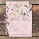 This design features blush pink and white roses and tan pampas grass half frame on a soft blush pink watercolor and subtle glitter background. This card is part of the Boho Pampas & Pink Roses Wedding Suite Collection created by Simply Farmhouse Press.