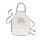 It is a good size for a child’s apron, it’s not too small and fits my 8 year old granddaughter perfectly. She was thrilled to see her name on the apron.The material is thick, excellent quality. The screen print of the cupcake is large and so is the child’s name. It takes up most of the upper half of the apron so it looks very nice. I haven’t washed it but the thick material will probably wash well.