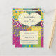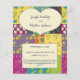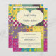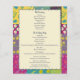 A heart shape graphic is set against a floral patchwork quilt background on this wedding program that has a warm, colorful look. The two-sided program has all a full program and participants list on the back with the bride and groom's names, wedding date and location and an optional quote on the front.