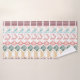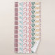 This towel set has a gold washcloth, a pink hand towel, and a bath towel with a Boho design of different shapes with lines in them in various colors.
