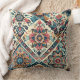 This eye-catching design features a captivating mix of geometric and floral motifs, brought to life in prominent colors of turquoise, orange, pink, and beige. The rich tapestry-like effect creates a warm and inviting atmosphere, ideal for any bohemian decor.
