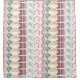This shower curtain has a Boho design of different shapes with lines in them in various colors.