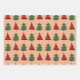 Boho Peach background with red and green Christmas trees on these fun trendy holiday wrapping paper sheets. Set of three