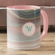 Boho Peachy Pink and Aqua Gold Strata with Initial Mug