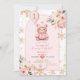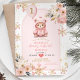 Boho Pink Beary First Winter Birthday Floral Invitation