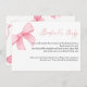 A lovely boho pink bow baby shower book request card.Visitors are asked to bring a brand-new or gently used children's book instead of a card.