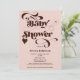 Modern boho brown and pink heart script bold baby shower invitation, all the colors are editable.