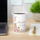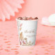 These paper cups feature a minimalist boho floral theme. The design features a floral pampas grass theme and incorporates soft pinks, brown and gold tones throughout the design. All text can be customized.
