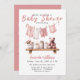 Boho Pink Clothesline Sweet Baby Girl Baby Shower Invitation