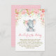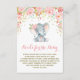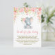 Adorable elephant theme book request insert card featuring pretty pink watercolor flowers and faux gold confetti
