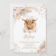 Boho Pink Floral Pampas Grass Highland Cow Party Invitation