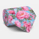 Boho pink flowers on blue neck tie
