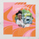 Boho Pink Orange Abstract Photo Graduation Party Invitation