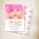 Boho Pink Pumpkin Fall 1st Birthday Girl Photo Invitation