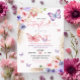 Boho Pink Purple Butterfly 1st Birthday Floral Invitation