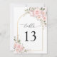 Bohemian pink rose bouquet style with faux gold arch table number template with elegant and blush florals and greenery botanicals in hand-printed watercolor.