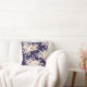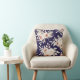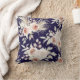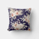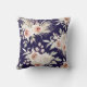 This throw pillow features a pattern of watercolor boho style pale pink roses and foliage on a navy blue background. Both sides of the pillow have the same pattern.
