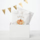 This boho baby shower favor bag features a watercolor pumpkin and fall foliage.