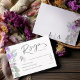 This charming rustic wedding RSVP card features elegant purple peonies and eucalyptus greenery, creating a romantic and timeless feel. The delicate floral artwork beautifully complements a countryside or garden wedding theme. Easily customisable, this design allows you to personalise the details to suit your celebration effortlessly. Don't forget to explore the full matching collection to create a cohesive and stunning wedding stationery set.