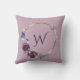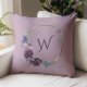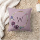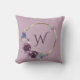 Boho Purple Floral Wreath Monogram Throw Pillow
