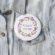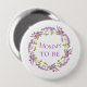Boho Purple and Greenery Watercolor Floral Mommy to be (baby shower) 4" button pin. This pin is customizable to be changed to the words you want for your special day.