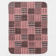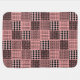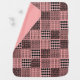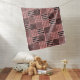 This baby blanket has a Boho design of squares with patterns in each in black and pink.