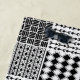 This beach towel has a Boho design of squares with patterns in each in black and white.