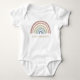 Our gender-neutral Boho Rainbow Baby Baby Bodysuit features a delightful hand-painted watercolor boho retro rainbow nestled within a pastel rainbow frame. Perfect for welcoming baby boys or girls, each piece in this cute collection exudes a carefree elegance that captures the joy and anticipation of this special milestone. From invitations to decorations, infuse your celebration with the timeless charm of our enchanting collection, creating memories as magical as your little one. Shop now and embark on a journey of love and laughter with our whimsical boho retro rainbow baby shower collection.
