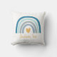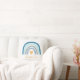 This adorable boho rainbow pillow is perfect for the nursery. The design features sweet muted colors in blue, aqua, and gold. Personalized the pillow with your choice of text, font, and font colors.