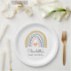 Modern adorable boho pastel rainbow watercolor baby shower paper plates, simple and sweet, with a small pink heart center and pinks, blues and mustard hues. A perfect style for any gender baby shower. Muted soft colors. See the full collection of matching products for this design at: https://www.zazzle.com/collections/boho_rainbow_watercolor_baby_shower-119574368006244004.