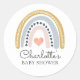 Modern adorable boho pastel rainbow watercolor baby shower sticker, simple and sweet, with a small pink heart center and pinks, blues and mustard hues. A perfect style for any gender baby shower. Muted soft colors. See the full collection of matching products for this design at: https://www.zazzle.com/collections/boho_rainbow_watercolor_baby_shower-119574368006244004.