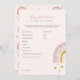 Designed as one of the games in our Modern Muted Rainbow Baby Shower Suite collection, this sweet design is designed for guests to predict baby's name, birth date, who baby will resemble, and more. Guests simply fill in the blanks, and can offer some words of advice for mom and dad as well. Copyright Elegant Invites, all rights reserved.