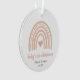 Cute Baby's First Christmas Ornament with a pink heart inside of a boho rainbow along with "baby's 1st christmas", baby's name and the year. The backside has your favorite newborn photo. This modern baby ornament makes a great Christmas gift for new parents of a baby girl.